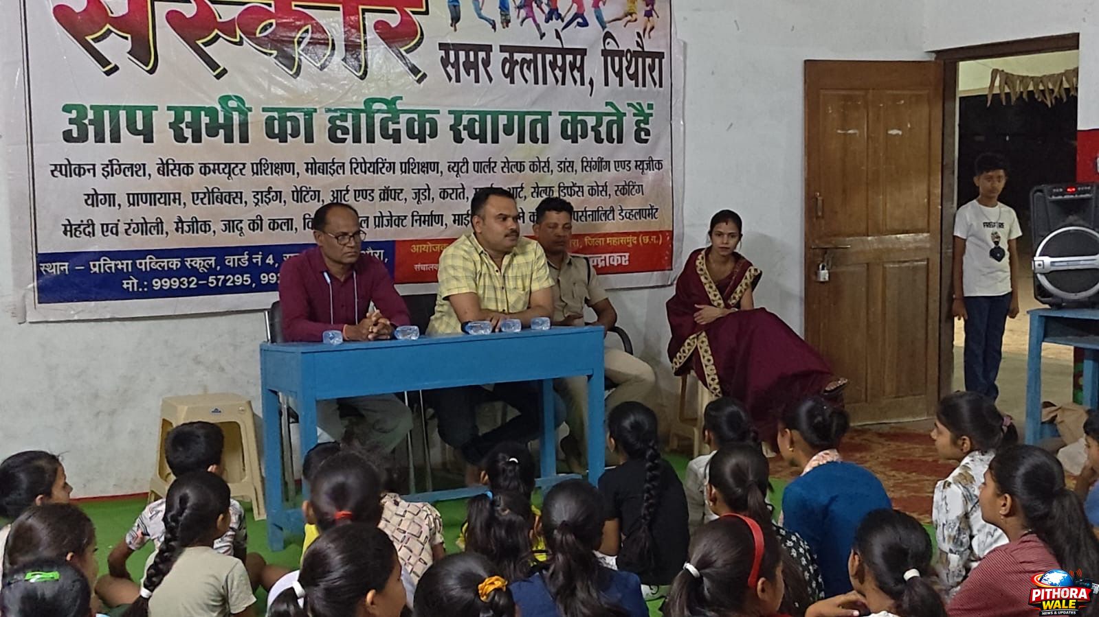 स्थानीय प्रतिभा विद्यालय में आयोजित ‘संस्कार मल्टी टैलेंट क्लासेस’ के दौरान विद्यार्थियों को भविष्य का जिम्मेदार नागरिक बनाने के उद्देश्य से एक विशेष जागरूकता सत्र का आयोजन किया गया। संस्कार शिक्षण संस्थान द्वारा आयोजित इस समर कैंप में पिथौरा थाना प्रभारी सिद्धार्थ मिश्रा ने अपनी टीम के साथ शिरकत की और बच्चों को सड़क सुरक्षा, यातायात नियमों और वर्तमान समय की बड़ी चुनौती ‘साइबर अपराध’ के प्रति जागरूक किया।
