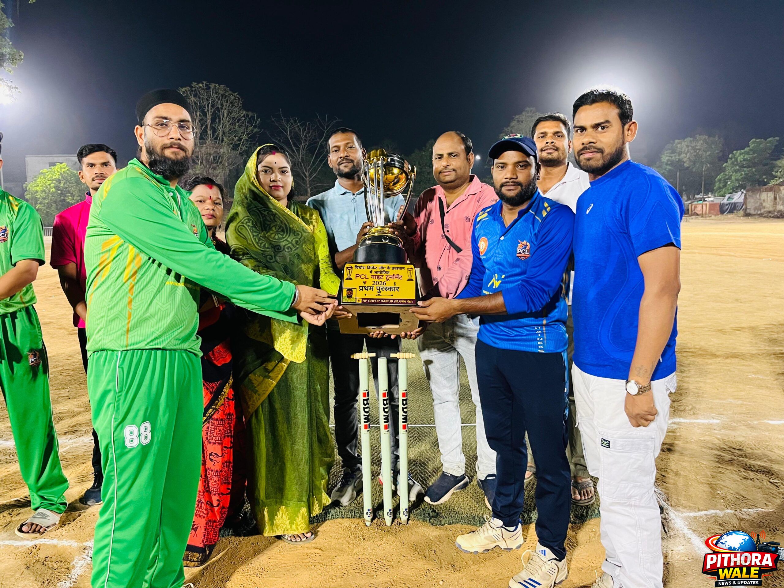 पिथौरा। शहीद भगत सिंह खेल मैदान में दूधिया रोशनी के बीच आयोजित ‘पिथौरा क्रिकेट लीग’ (PCL) का भव्य समापन हुआ। 4 अप्रैल से शुरू हुए इस रोमांचक टूर्नामेंट के अंतिम मुकाबले में ग्रीन टीम ने शानदार प्रदर्शन करते हुए प्रथम पुरस्कार अपने नाम किया।